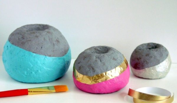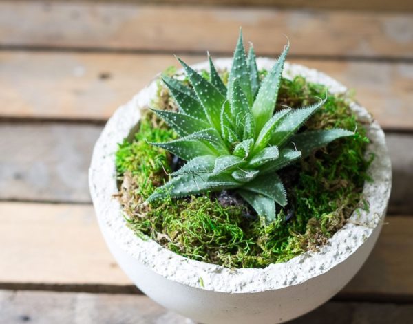 이 용기를 만들려면 둥근 스펀지가 필요합니다. 나중에 식물을 심을 때 사용할 작은 홈을 파세요. 그런 다음 스펀지를 시멘트 모르타르에 담그세요. 완성된 화분은 매우 가벼워서 어린아이도 만들 수 있습니다. 심는 구멍이 작기 때문에 다육식물만 들어갈 수 있습니다.