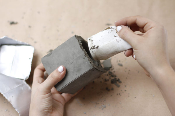 - 콘크리트를 거푸집에 붓고 4시간 동안 기다리세요. 그 후 거푸집을 뜯거나 잘라서 제거하지만, 화분 자체는 아직 건드리지 마세요. 최소 3일 동안 그대로 두어야 합니다. 이 기간 동안 화분의 강도는 30% 정도 증가합니다. 28일 후에 최대 강도에 도달하고 나서야 식물을 심을 수 있습니다. 이 상태를 방치하면 콘크리트 화분이 무너질 수 있습니다.