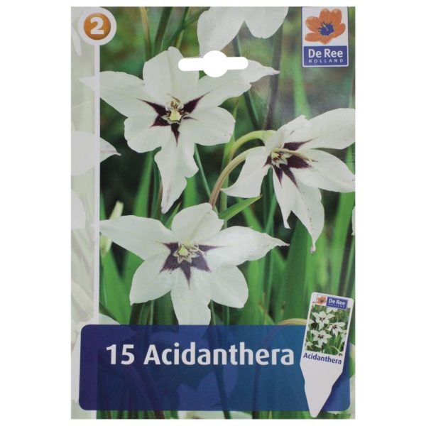 우리나라에서는 아시다테라 비콜로르(Acidatera Bicolor) 또는 무리엘라(Muriela)를 주로 재배합니다. 시중에 판매되는 구근 포장에는 비콜로르 화이트(Bicolor White), 무리엘라(Muriela), 무리엘라(Muriel), 비콜로르(Bicolor)와 같은 이름이 적혀 있습니다. 모두 같은 품종입니다.