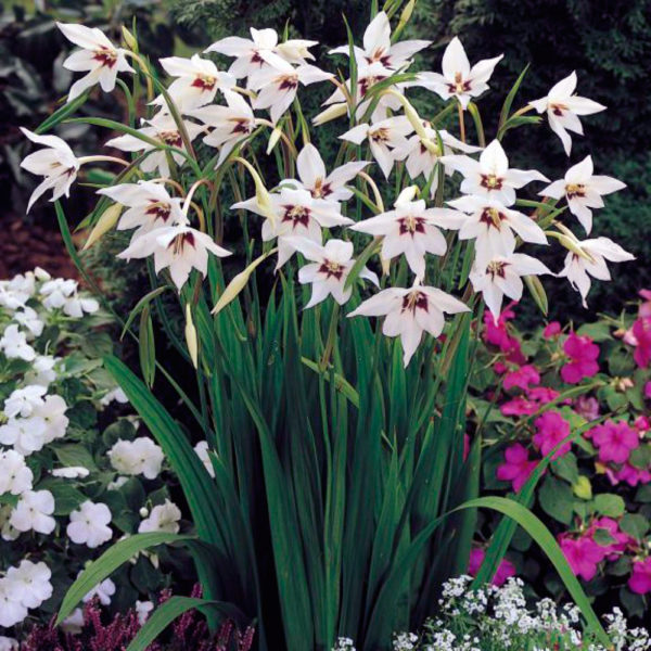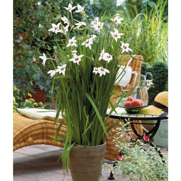 - 글라디올러스 알바(아시단테라 화이트)는 둥근 꽃잎을 가진 작은 꽃을 피우며, 순백색에 얼룩이 없고 향기가 매우 좋습니다. 아시단테라 종 중 가장 향기로운 종입니다. 오늘날 이 식물은 글라디올러스 알바로 분류됩니다.