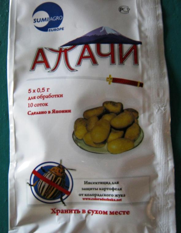 콜로라도 감자딱정벌레와 다른 곤충을 처리하는 데 사용되는 아파치의 양에는 차이가 있습니다. 감자와 다른 식물에 아파치를 사용하는 방법에 대한 설명서를 주의 깊게 읽을 때 이 점을 고려해야 합니다. 이 제품은 딱정벌레가 숨어 있을 수 있는 덤불 아래 토양을 처리하는 데에도 사용할 수 있습니다. 물 1리터당 혼합물 1g(또는 0.5g 봉지 2개)을 넣고 1리터 용기에 희석하여 사용하십시오.
