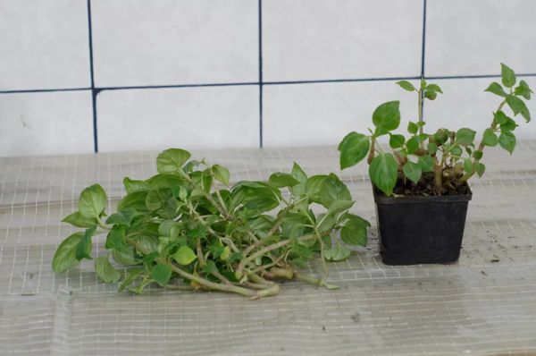 8~10cm 길이의 새싹 끝은 꺾꽂이에 적합합니다. 물에 뿌리를 내리고 뿌리가 내리기 시작합니다. 뿌리가 내리면 모래가 섞인 촉촉한 흙이 담긴 작은 화분에 옮겨 심습니다.