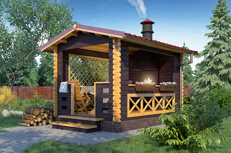 - 그릴 가제보나 바비큐 그릴에는 바비큐 요리나 요리를 위한 특수 장비 설치가 필요합니다. 편안한 식사를 위해서는 효과적인 환기와 연기 배출이 필수적입니다. 식기 수납장과 음식 조리용 테이블도 설치할 수 있습니다. 별도의 휴식 공간도 마련되어 있으며, 테이블이 있는 고정식 또는 이동식 벤치를 사용할 수 있습니다.