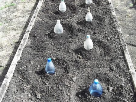 필름이나 부직포를 두 겹 깔아 밭 위에 임시 온실을 만듭니다. 씨앗을 구멍에 심었다면, 바닥을 잘라낸 플라스틱 병을 각 구멍 위에 묻을 수 있습니다. 플라스틱에 여러 개의 구멍을 뚫어 신선한 공기가 들어오도록 합니다. 새싹이 돋아나면 윗부분의 필름을 제거합니다.