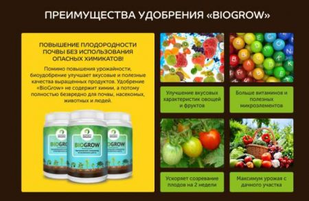 모든 식물은 토양에서 얻는 미네랄과 영양소가 필요합니다. 하지만 재배된 식물은 자연이 제공하는 영양소를 항상 충분히 섭취하는 것은 아닙니다. 이러한 경우, 정원사는 BioGrow와 같은 특수 생물활성제를 식물에 보충해야 합니다.BioGrow는 작물을 보호하고, 토양을 비옥하게 하며, 과일의 숙성을 촉진하고, 수확량을 증가시킬 뿐만 아니라 환경에도 해를 끼치지 않습니다. 이 바이오액티베이터는 수많은 리뷰를 받았으며, 제조사에 따르면 이미 3만 2천 명 이상이 구매했습니다.
