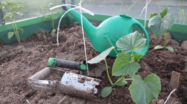 준비된 온실 안에서 토양의 물리적, 화학적 특성을 점검합니다. 산도에 이상이 없으면 영양분을 추가합니다. 오이는 재배하기 쉬운 작물이지만, 그렇다고 농업 관련 권장 사항을 무시할 필요는 없습니다. 먼저 토양 1m²당 복합 비료 2kg을 시비합니다. 토양을 풀고 파냅니다. 지난 시즌에 식물 병해가 발견된 경우, 과망간산칼륨 포화 용액으로 토양을 추가로 처리합니다.