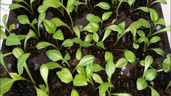 잎이 두세 개 나오면 수확 단계가 시작됩니다. 묘목은 트레이나 개별 컵에 옮겨 심어야 하지만, 묘목이 길어질 수 있으므로 옮겨 심는 것을 미루지 마세요.