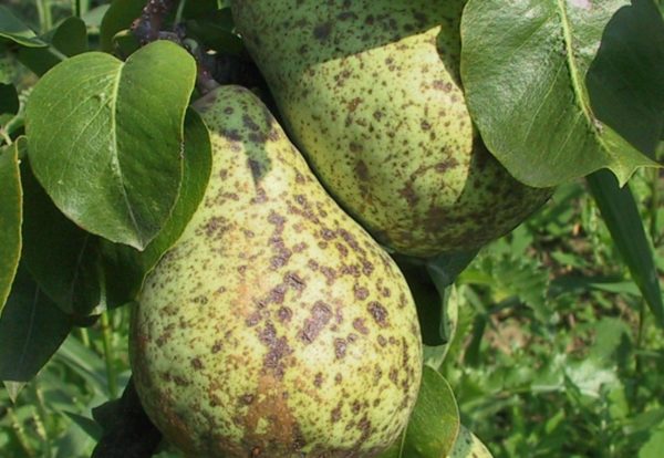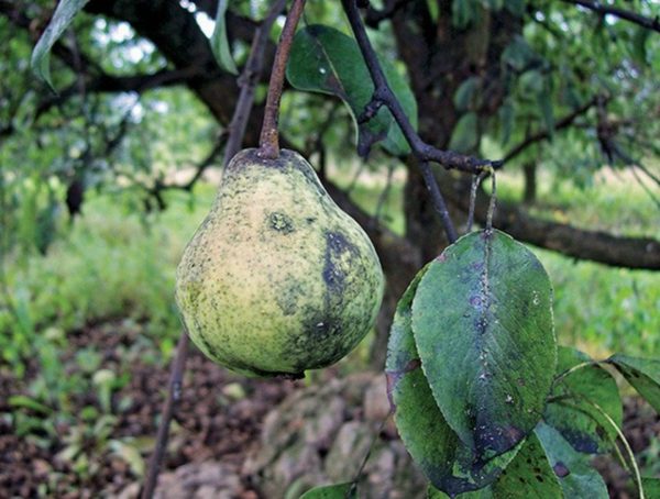 배나무는 종종 흑색병에 걸리기 쉽습니다. 흑색병은 열매와 잎을 공격합니다. 잎 뒷면에 올리브색 반점이 나타나는데, 이는 곰팡이의 포자입니다. 열매는 썩기 시작하고 갈라지며 과육은 딱딱해집니다. 배나무가 생장기에 감염되면 변형됩니다. 1% 보르도 혼합액으로 처리합니다. 잎과 새싹이 나오고 꽃이 진 후에 나무에 살포하십시오. 그래도 효과가 없으면 니트로펜, 스코르, 또는 드녹 용액을 사용하십시오. 예방 조치로 과도한 가지를 잘라내십시오. 이렇게 하면 통풍과 일광이 더 잘 됩니다. 낙엽은 소각합니다.