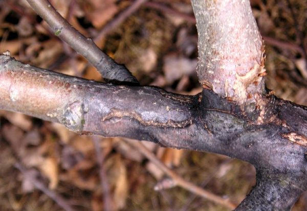 이 질병은 흔히 세인트 안토니오 화재(St. Anthony's Fire)로 알려져 있습니다. 수년에 걸쳐 발병하며, 주요 가지와 줄기에 작은 균열이 생길 수 있습니다. 나무껍질은 축축하고 갈색 반점으로 뒤덮입니다. 이러한 열린 상처는 곰팡이, 미생물, 박테리아가 침투할 수 있는 통로가 됩니다. 이러한 상처는 결국 수확물과 나무 전체를 파괴하는 질병의 발생을 유발합니다. 배나무를 살리려면 건강한 나무껍질을 포함하여 감염된 부분을 잘라내야 합니다. 잘린 부분은 황산구리로 소독하고 정원용 피치나 뮬린과 점토를 섞은 것으로 코팅합니다. 낙엽은 재빨리 제거하여 태워야 합니다.