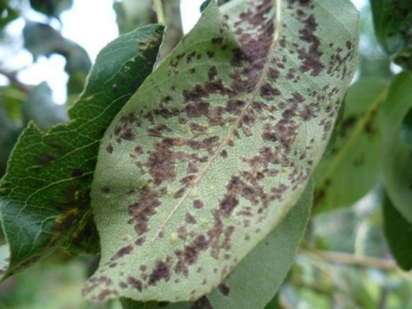 이 병은 갈색 반점으로 나타납니다. 일반적으로 모양이 불규칙하지만, 때로는 완벽한 원형을 띱니다. 감염이 심할수록 반점이 커지고 결국 합쳐집니다. 잎은 노랗게 변하고 일찍 떨어집니다. 나무 자체가 약해지고 저온 저항성을 잃으며 나무껍질이 자라지 않습니다. 잎은 태워야 합니다. 1% 보르도 혼합액을 살포하는 것도 좋습니다. 개화 중에는 사용하지 않고 개화 전후에만 사용합니다. 아비가-피크와 HOM은 갈색 반점 방제에 효과적인 것으로 입증되었습니다.