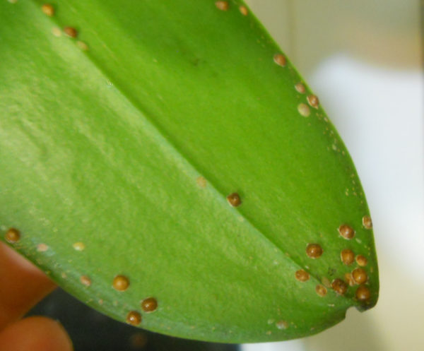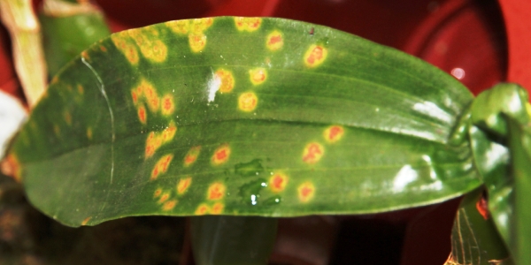 많은 정원사들이 팔레놉시스 난초의 이 질병과 그 치료 방법에 관심을 갖고 있습니다. 녹병은 드물게 발생하며 잎에 영향을 미칩니다. 대부분의 경우 약해진 식물이 영향을 받습니다. 이 질병은 잎에 반점 형태로 나타나며, 결국 붉은색으로 변합니다.