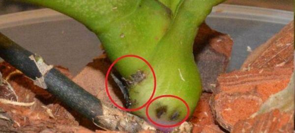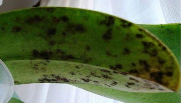 반점은 어두운 색으로 보입니다. 공격으로 인해 난초는 약해지고 곧 죽습니다.