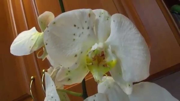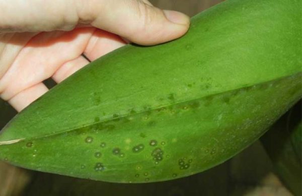 난초 응애도 위험합니다. 잎에 막이 생기고 그 후 흰 거미줄이 나타납니다. 잎사귀에 노란 반점이 생겨 식물이 약해집니다. 응애의 공격으로 인해 새싹이 나오지 않습니다.