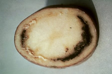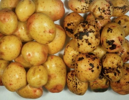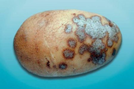 심하게 감염된 덩이줄기는 먹어서는 안 됩니다. 오염된 땅에는 최대 7년 동안 감자를 심어서는 안 됩니다.