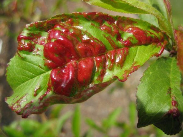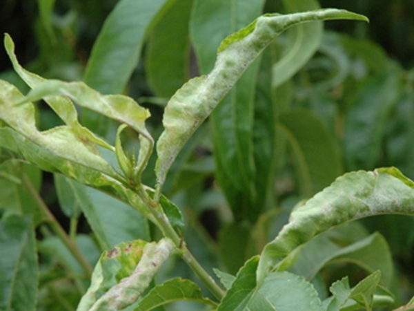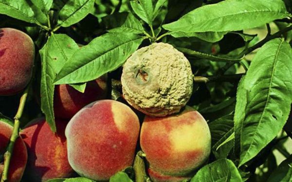 복숭아와 천도복숭아에 발생하는 이 병은 가장 심각한 병 중 하나로 간주됩니다. 이 병은 열매를 포함한 나무의 지상부 전체에 영향을 미칩니다. 흡지로 식물에 붙어 있는 균사체가 식물을 먹습니다.