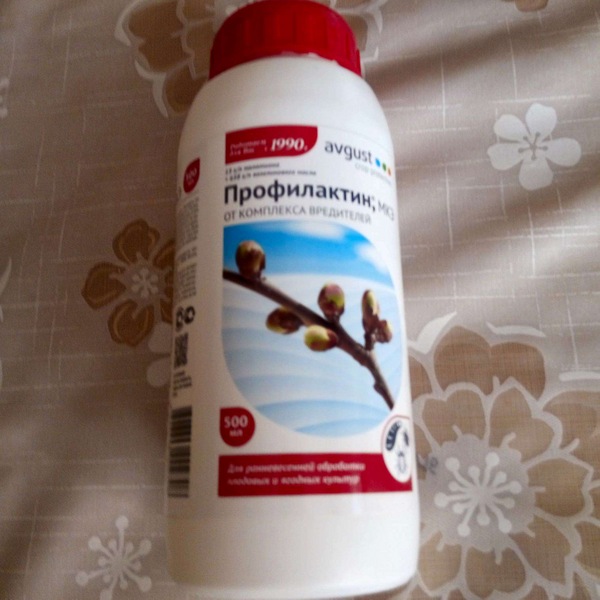 월동 곤충(성충 및 유충) 방제를 위한 살충제는 초봄에 사용합니다. 3월과 4월에 프로필락틴을 자두나무에 살포하면 해충 군체의 성장을 억제하고 응애, 잎말이나방 유충, 진딧물을 박멸합니다. 제조업체는 500ml 플라스틱 병에 담긴 즉시 사용 가능한 액상 제품을 제공합니다.