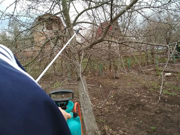 이른 봄, 3월이나 4월 초, 나무에 싹이 트기 전에 과수원의 다년생 과실 및 열매 작물에 해충과 질병 방제를 실시합니다. 이 조치는 줄기와 가지에서 월동하는 곰팡이 포자, 곤충 알, 유충을 제거하기 위해 필요합니다.