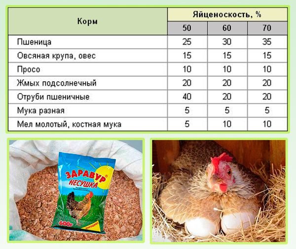 암탉에게는 따뜻한 계절과 겨울 모두 체계적이고 엄격하게 정해진 양만큼의 사료를 공급해야 합니다. 사료가 과도하거나 부족하면 생산성에 부정적인 영향을 미칠 수 있습니다.