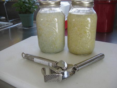 마늘을 잘게 다지고 물 5리터를 넣으세요. 혼합물을 약 2~3시간 동안 그대로 두었다가 물 5리터를 더 넣으세요. 위에 설명된 일정에 따라 만들어진 용액을 나무와 관목에 바르세요.