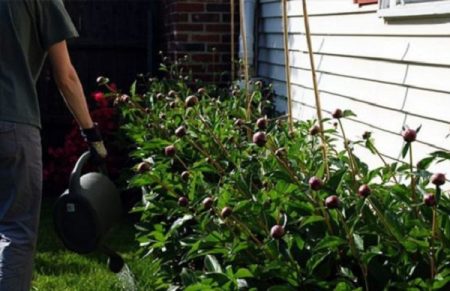 봄에 작약이 피기 전에 케미라-유니버설을 뿌려주세요. 꽃이 지고 일주일 후에 다시 비료를 주세요. 방법은 간단합니다. 혼합물을 살짝 뿌리고 흙으로 덮어주세요.