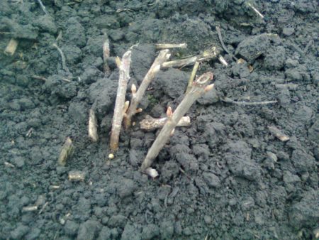 - 덤불 주변의 흙을 풀 때는 삽이 아닌 경운기와 갈퀴를 사용하는 것이 좋습니다.