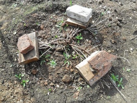- 가지를 땅으로 구부리고 돌이나 깨진 벽돌로 누르고 그 위에 흙을 덮습니다.