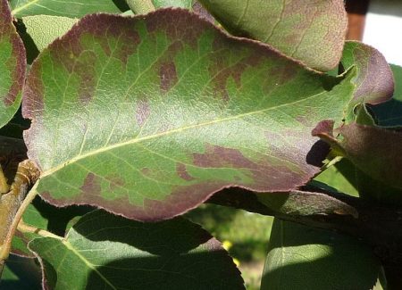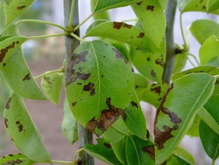 곤충 해충의 공격으로 인해 배나무 잎이 검게 변하는 경우 다음 제제를 살포합니다: Confidor Maxi, Aktara, Opperkot, Actellic.