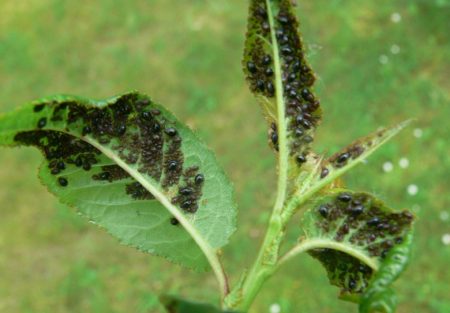 잎에서 유백색 수액을 빨아먹는 것 외에도, 해충은 과일나무의 건강에 부정적인 영향을 미치는 특정 독소를 분비합니다. 진딧물 감염으로 인해 나무의 싹이 떨어지고, 잎은 검고 끈적끈적한 막으로 덮여 떨어지며, 과일이 맺히지 않습니다.