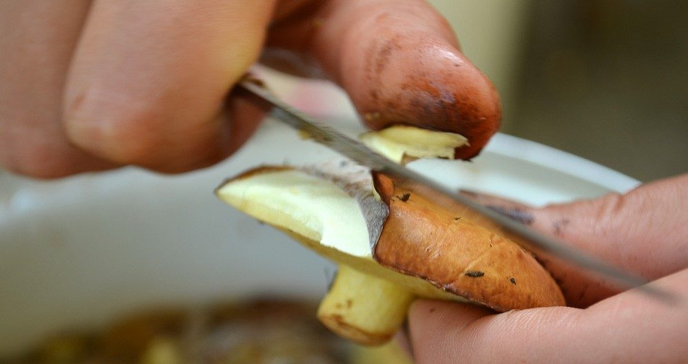 버섯의 매끄러운 표면이 손상되지 않도록 갓 가장자리부터 필름을 벗겨야 한다는 점을 명심하세요. 갓을 갓 따면 이렇게 하면 쉽게 벗겨질 수 있습니다. 하지만 날씨가 습하면, 버섯이 완전히 마른 후에 칼로만 필름을 벗겨낼 수 있습니다.
