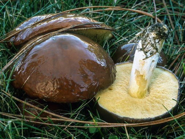 버터버섯은 종류가 많지만, 모두 생김새가 매우 비슷합니다. 매끈한 줄기는 원통형이고, 살은 연한 노란색이나 백회색입니다. 자르거나 부러뜨리면 살이 파랗거나 붉은색으로 변할 수 있습니다.