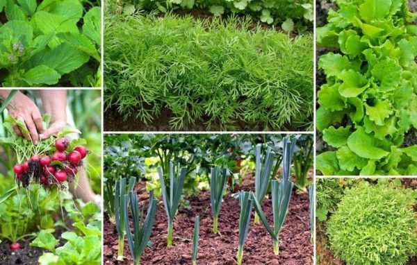 두 번째 경우에는 푸른 채소(딜, 파슬리, 시금치)나 빨리 자라는 채소(무, 무, 조생 당근)를 위해 허브를 심습니다. 다음 해에는 다음과 같이 화단에 심습니다. 봄철 종.