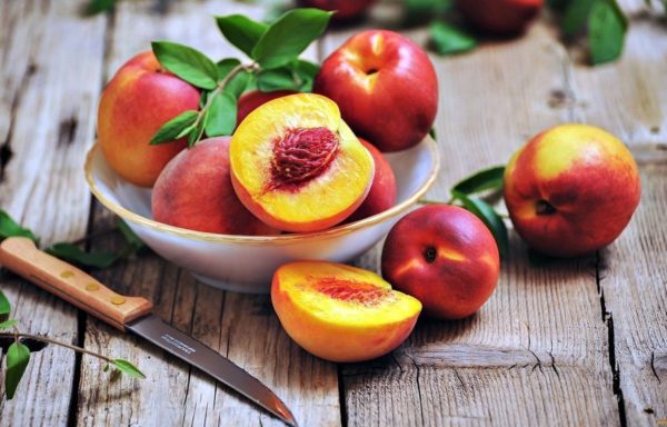 - 천도복숭아 - 씨앗이 과일 펄프에서 분리되었으며, 껍질 표면은 매끄럽고 털이 없습니다.