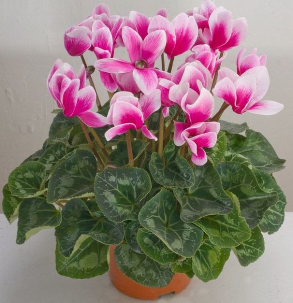 페르시아 시클라멘은 왜성, 중형, 대형 품종으로 나뉩니다. 왜성 품종은 실내 환경에 가장 잘 견디기 때문에 실내 재배에 적합합니다. 꽃은 거의 겨울 내내 피고 봄에 끝납니다. 휴면 기간은 9개월입니다.