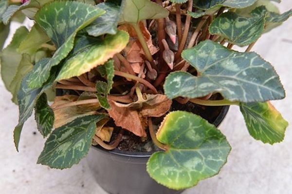 시클라멘 잎이 마르기 시작하면 휴면기에 접어든 것입니다. 이 시기에는 식물의 새로운 상태에 맞춰 관리해야 합니다.