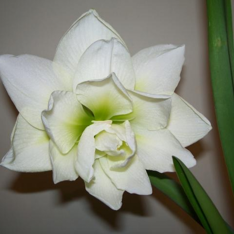 카리스마 - 비앙카 - 눈처럼 하얀 꽃잎과 녹색 목을 가진 작은 꽃입니다.
