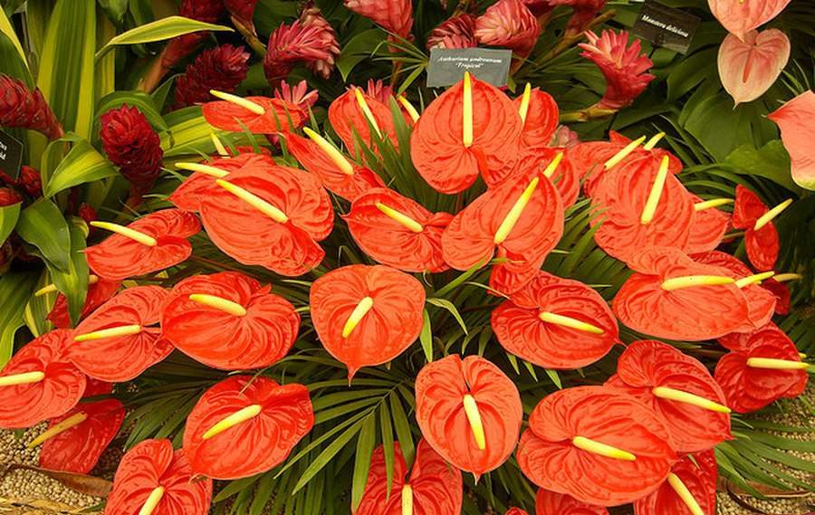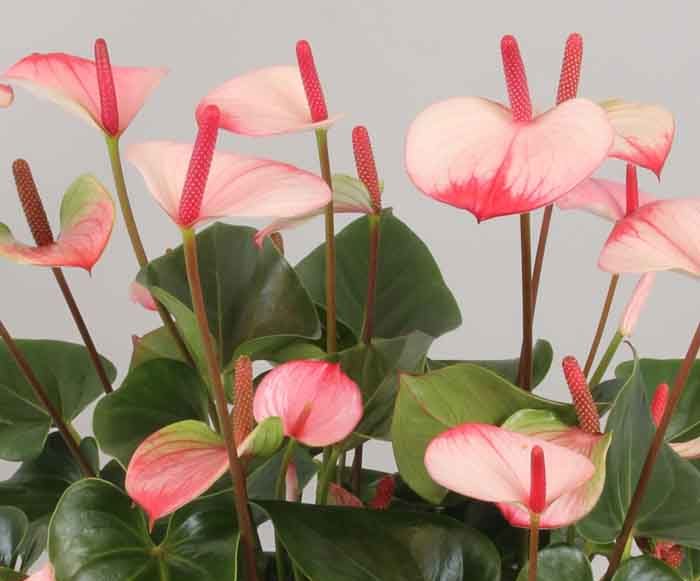 오늘날 실내용 안스리움은 약 30종, 교배종은 70종 이상 있습니다. 모든 종은 세 그룹으로 나뉩니다.