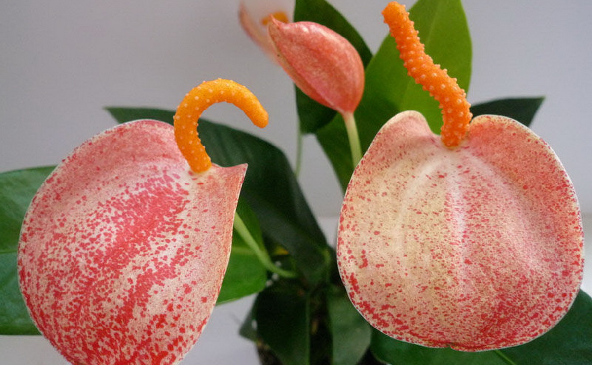 러시아에서 안스리움은 실내에서만 자라는 식물로, 특별한 관리가 필요합니다. 짙은 녹색 잎은 최대 40cm까지 자랄 수 있습니다. 잎 모양은 종에 따라 다르며, 화살 모양이나 하트 모양입니다. 꽃 자체는 분홍색, 노란색, 또는 흰색 꽃이 피는 꽃차례(spadix)와 비슷합니다. 이 식물의 장식적인 매력은 꽃을 둘러싼 윤기 나는 불염포(spathe)에 있습니다. 불염포의 색깔은 진한 체리색에서 흰색까지 다양하며, 모양은 하트 모양입니다.