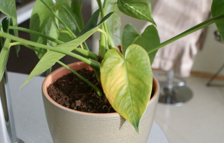 - 병든 안스리움을 다른 식물로부터 분리합니다.