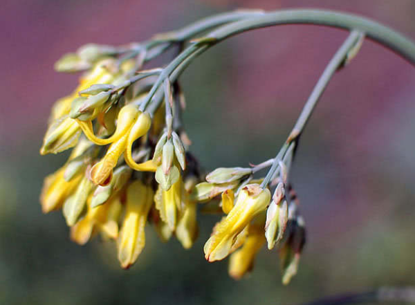금잔화(Dicentra aureiflora)는 멕시코와 캘리포니아의 높은 산비탈이 원산지입니다. 이 품종은 키가 최대 1.5미터까지 자라며 따뜻한 계절 내내 꽃을 피웁니다. 짙은 노란색 꽃에는 독특한 곡선을 가진 두 개의 꽃잎이 있습니다. 야생에서는 이 관목들이 최근 발생한 화재에서도 빠르게 자라나지만, 정원에서는 다른 품종들과 달리 특별한 환경이 필요합니다.