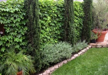 - 울타리 역할을 하는 금속으로 짠 그물 근처에 포도나무를 심으면, 살아있는 벽이 주인을 호기심 많은 눈으로부터 보호할 수 있습니다.