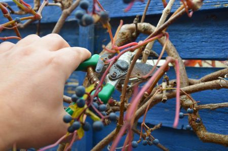 - 포도나무와 얽힌 후에는 커다랗고 푸르고 붉은 덤불처럼 보일, 망가지고 보기 흉한 헛간 근처에 식물을 심습니다.