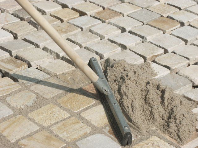 포석 위에 모래를 뿌린 후, 뻣뻣한 솔을 사용하여 타일 사이의 틈새를 쓸어내리세요. 더욱 안전하게 시공하려면 호스로 모래에 주기적으로 물을 뿌려주세요. 처음에는 틈새를 제대로 메우기 어렵기 때문에 시간이 지나면 모래가 가라앉을 수 있습니다. 그런 다음 모래를 더 채워주세요.
