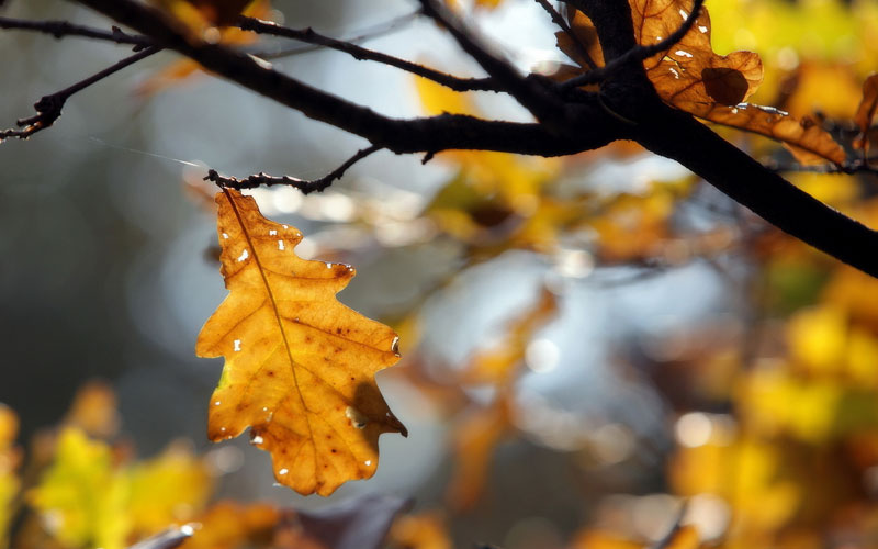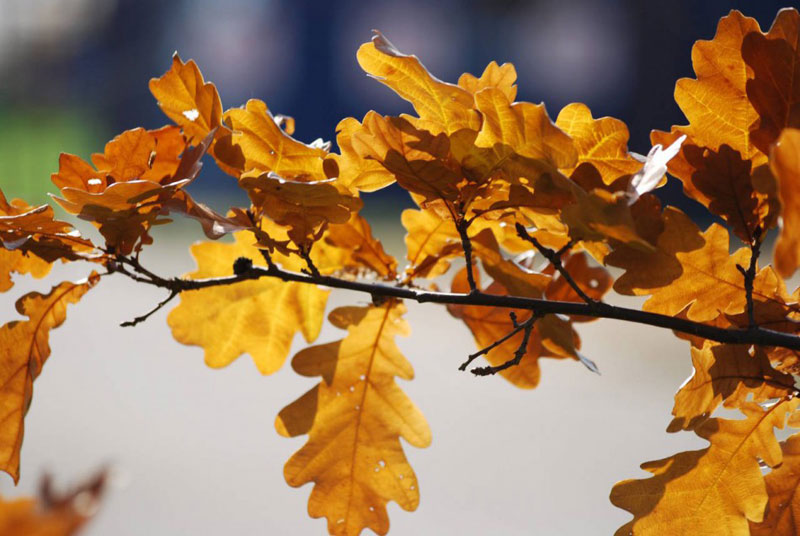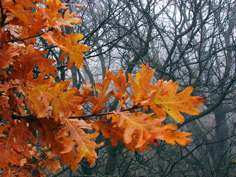 10월이 되면 많은 숲의 나무들이 선명한 색깔의 옷을 벗어던지고 앙상한 모습으로 남습니다. 가을 참나무는 잎을 내놓을 겨를이 없습니다. 잎이 말라 갈색으로 변하더라도 가지에 단단히 붙어 이듬해 봄까지 그 자리를 지킵니다.
