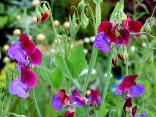 한해살이풀인 스위트피는 튼튼한 뿌리 덕분에 재배가 매우 쉬워 정원사들이 즐겨 찾습니다. 꽃은 6월 초부터 첫 서리가 내릴 때까지 계속됩니다.