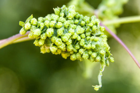 봄에는 날개 없는 암컷 진딧물이 겨울 알에서 부화합니다. 이들은 포도나무 잎 1~6개에 서식합니다. 세대가 바뀌면서, 날씨가 좋으면 최대 6개까지 번식하며, 진딧물은 식물의 녹색 부분을 따라 점점 더 높이 올라갑니다. 주둥이로 포도나무 잎을 뚫은 곳에 녹색의 오목한 혹이 형성됩니다. 포도나무 잎은 영양분을 잃고 말라 죽습니다. 먹이가 부족해지면 진딧물은 이웃 포도나무로 이동합니다.
