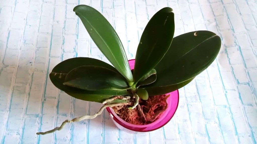 5) 난초 잎에서 새롭고 젊고 건강한 잎이 나오고 있습니다.