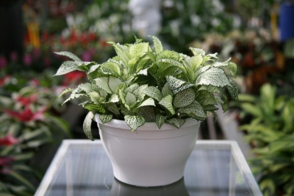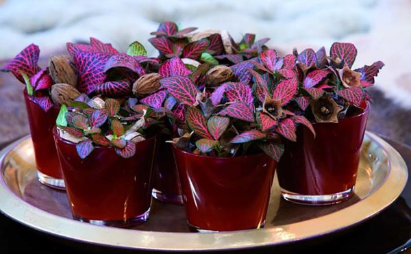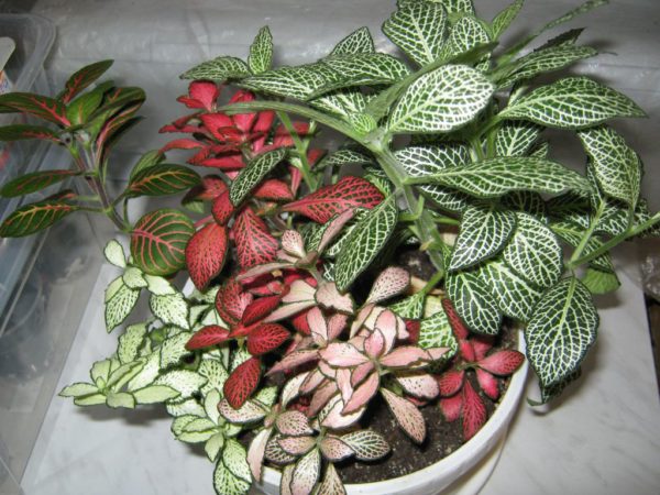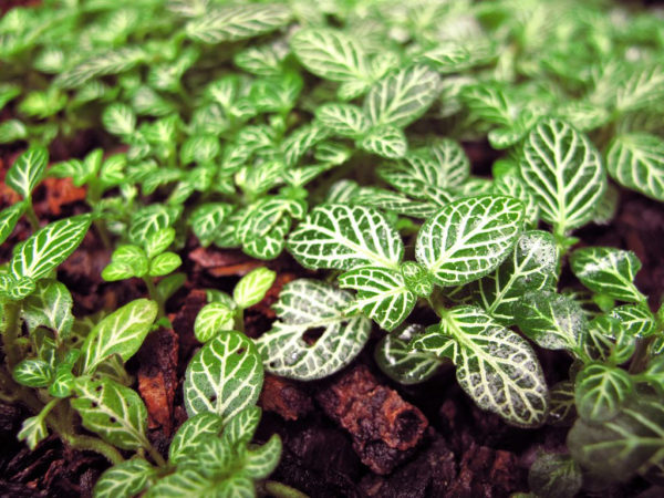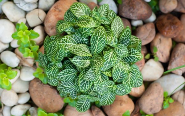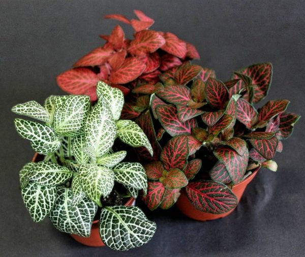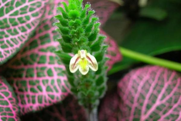- 피토니아 베르샤펠티. 잎은 길쭉하고 타원형이며 부드러운 털로 덮여 있습니다. 진홍색, 분홍색, 적자색 잎맥이 복잡한 무늬를 이룹니다. 새싹은 은색에서 올리브색으로 변할 수 있습니다. 식물은 키가 10cm에 이릅니다.