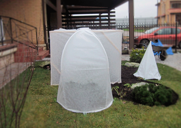덮개는 천연 소재를 사용합니다. 필름, 리놀륨 또는 기타 소재는 식물을 질식시킬 수 있으므로 사용하지 마십시오. 덮개는 봄에 심한 서리가 내릴 위험이 지나간 후에 제거합니다.