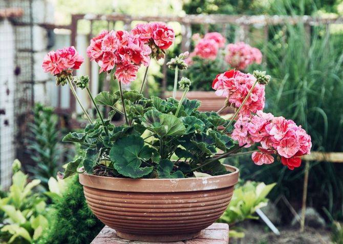 제라늄 잎에는 타닌 성분이 함유되어 있어 유해 미생물을 파괴할 수 있습니다. 이 성분들은 위장 질환 치료에 사용되며, 약용 차로 복용합니다. 제라늄에는 진정제로 사용할 수 있는 오일도 함유되어 있습니다.