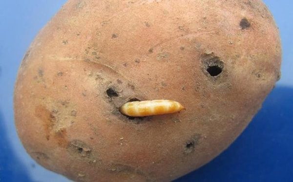 유충은 최대 2~3cm 길이의 애벌레로, 갈색을 띤 노란색 또는 갈색의 질긴 키틴질 외피를 가지고 있습니다. 3~4년 동안 땅속에서 살면서 뿌리, 포복경, 그리고 식물의 밑동을 손상시킵니다. 덩이줄기에서는 유충이 미로 같은 터널을 갉아먹어 감자 썩음병과 부패를 유발합니다. 이 해충은 위험한 질병을 유발하는 바이러스를 운반하여 감자를 저장 및 섭취에 부적합하게 만듭니다.
